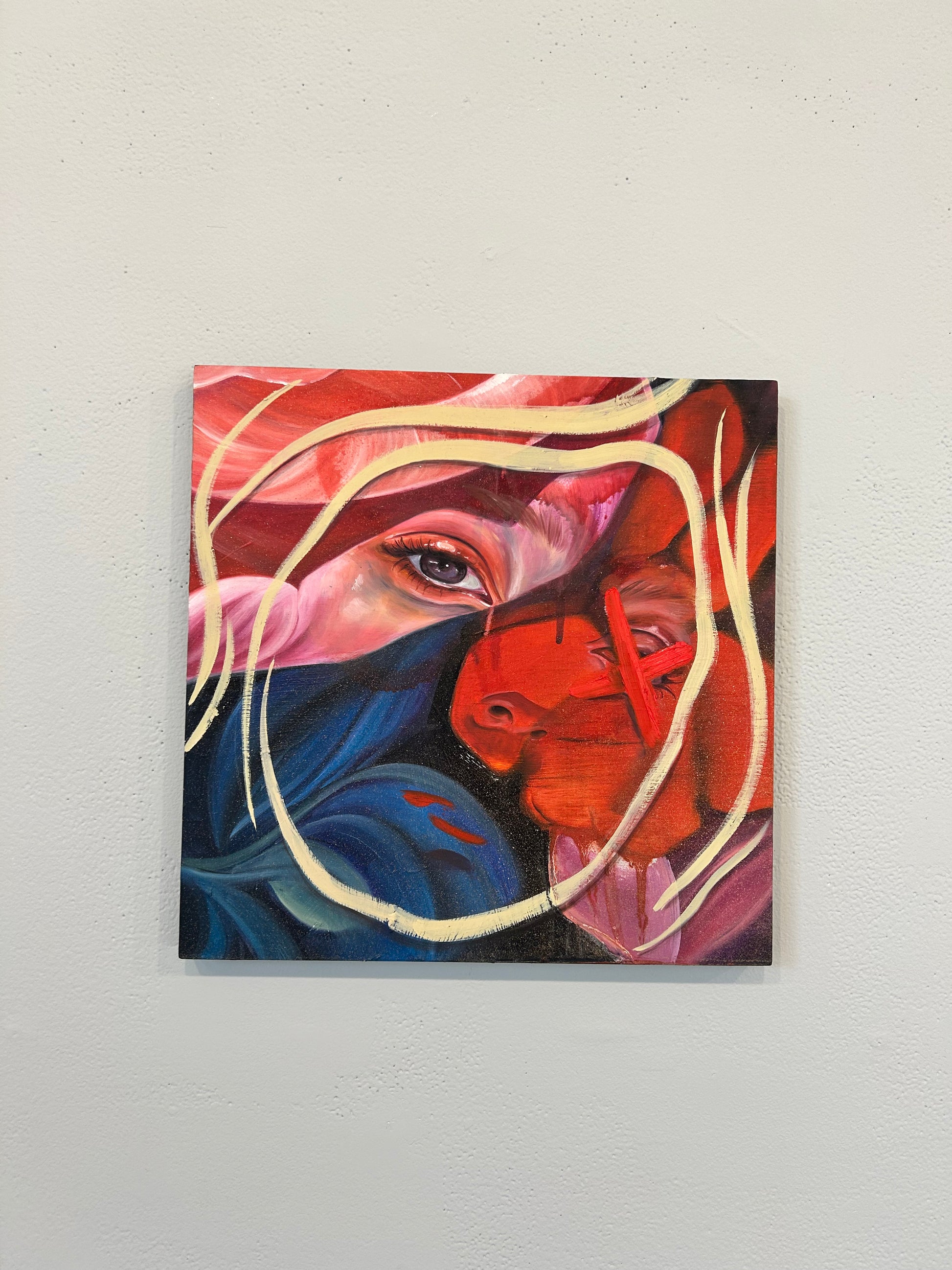 Oil and spray paint on wood board