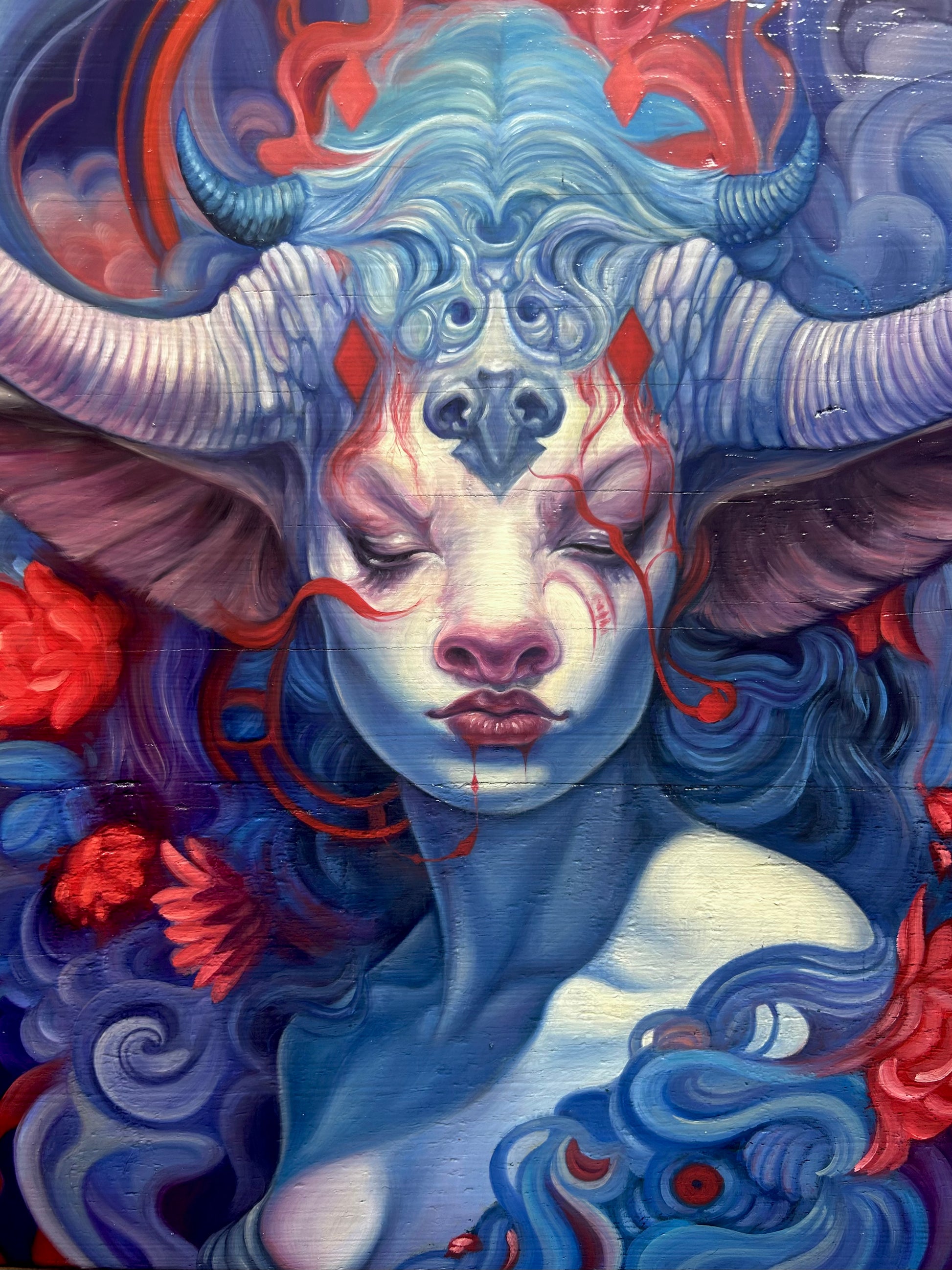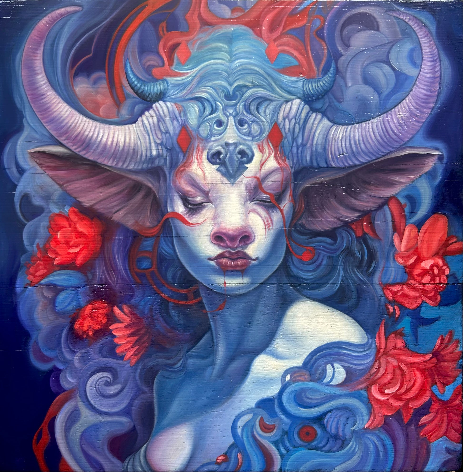 Oil paint on solid Oak 12in x 12in Created for a group exhibition in LA.